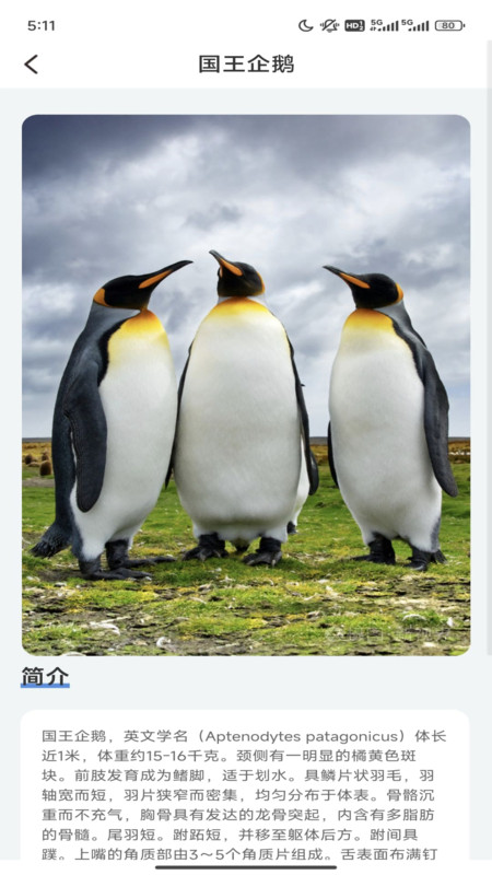 2、每种企鹅都会有详细的图文介绍,还有相关资讯。