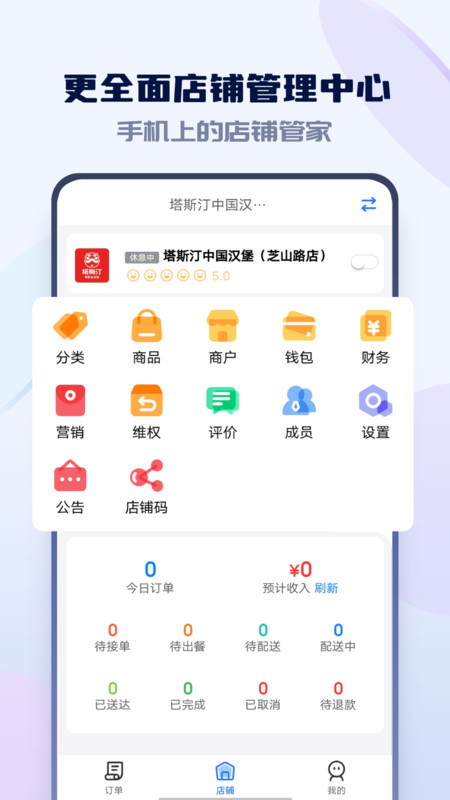 1、是一个专业的校园外卖店铺管理工具,帮助商家轻松经营店铺。