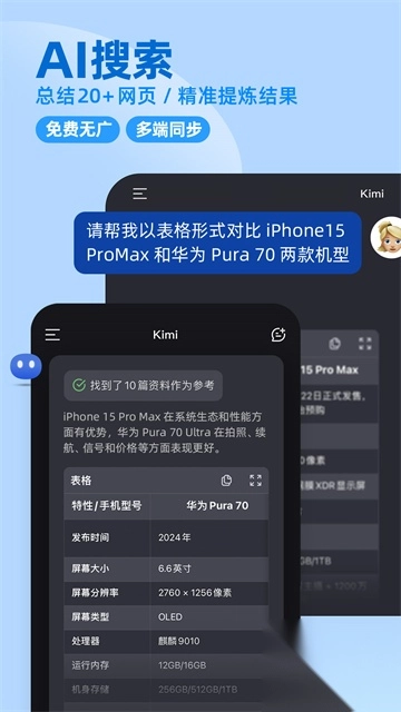 2、基于语义联网搜索,Kimi可以整合各种零散信息,帮助用户准确找到所需内容。