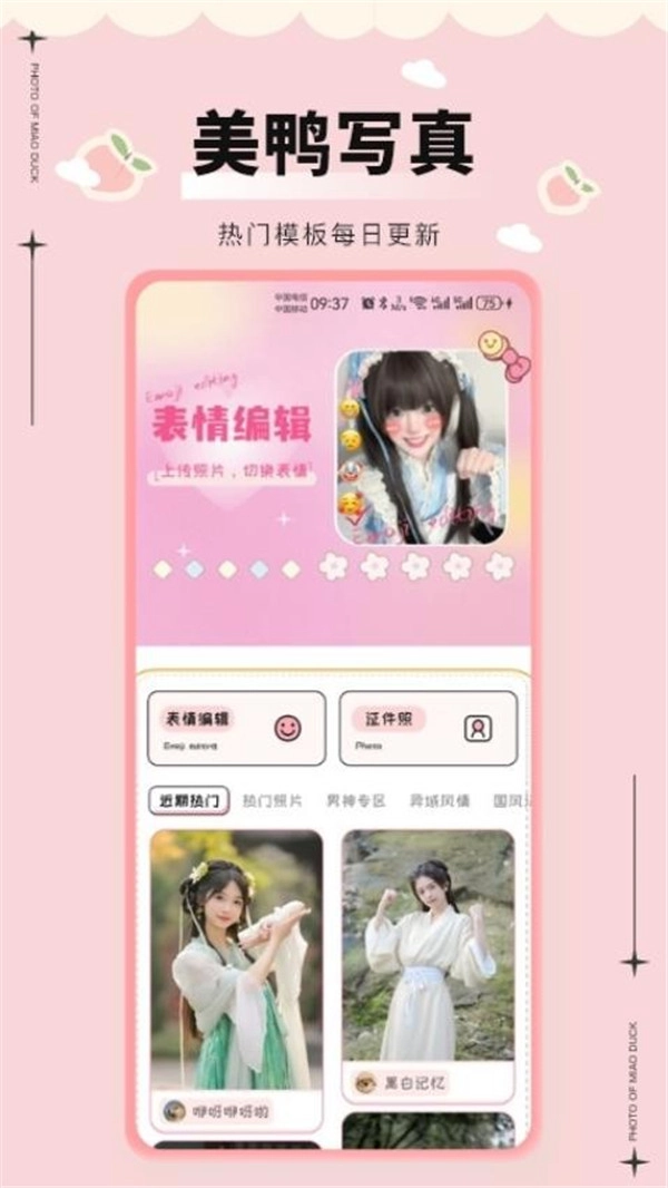 美鸭写真APP内置了丰富的贴纸和表情包,用户可以在照片中添加各种可爱的贴纸和表情,增加照片的趣味性和个性化。