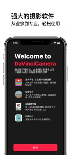 DaVinciCamera使业余摄影爱好者能摄制出如同电影般画面的视频,也让专业摄影爱好者能直接使用移动设备进行高级的调色。