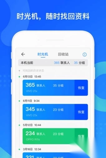 误删找回:通过回收站或时光机,随时找回误删的联系人