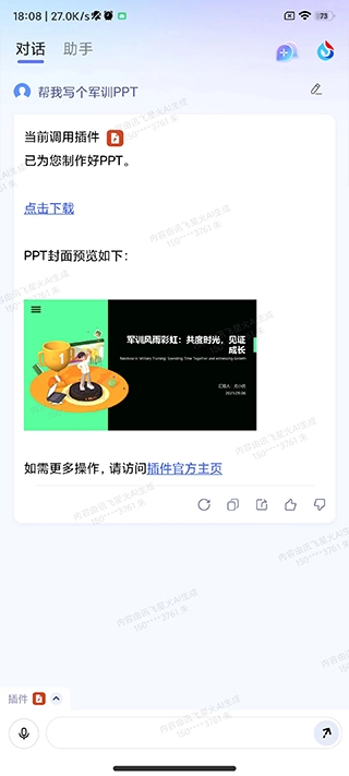 接下来,你便能在输入框内输入需求,例如:“请帮忙生成一份 10 页左右的自我介绍 PPT”。通常情况下,只要依据你期望的指令操作,生成的 PPT 质量相当不错,无论是界面美观度还是内容都已备好。你只需结合自身实际情况稍作修改就行,使用它能够节省超过 80% 的时间。