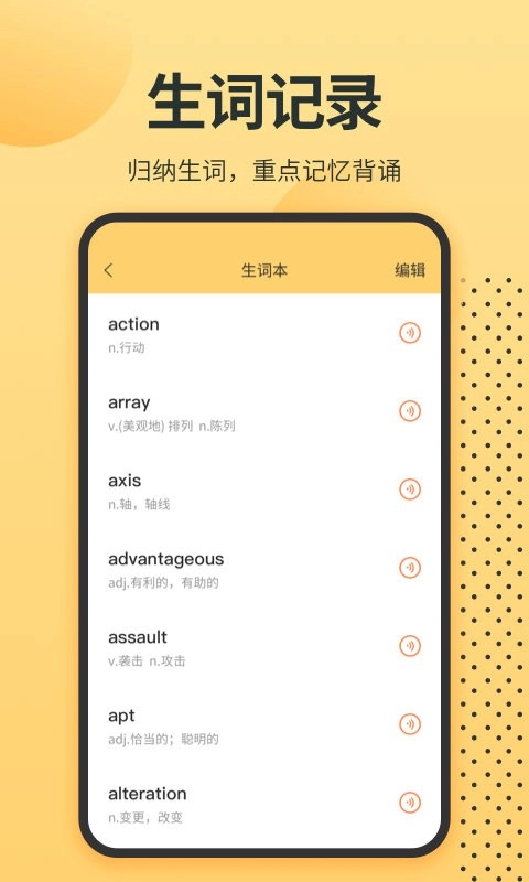 英语单词君是一款助力每位用户学习英语的软件。在这儿,你每日只需记住相应单词,就能持续扩充英语词汇量。软件中还设有大量有趣的小游戏,助力你记单词,实现边玩边学。快来体验吧!
