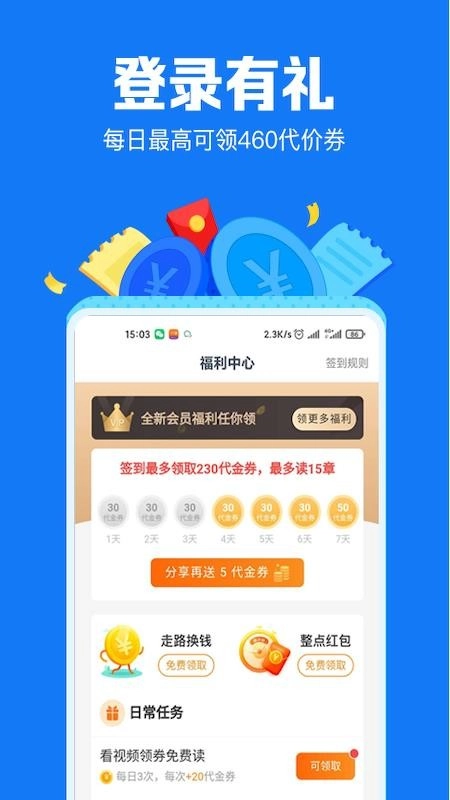 新人首次登录此阅读应用,就能畅享更多丰厚大礼包。