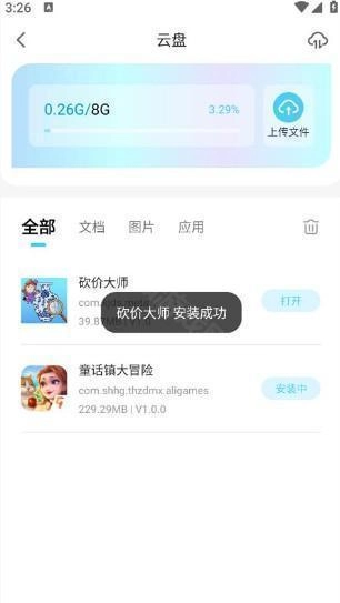 2、能够作为云端储存空间,可以一键上传文件、应用、图片等到你的装置中。