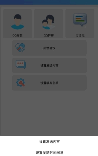 2、然后在软件内部点[设置发送内容] , 开启\\"防冻结”,设置“间隔时间\\"(3~5秒最好)。