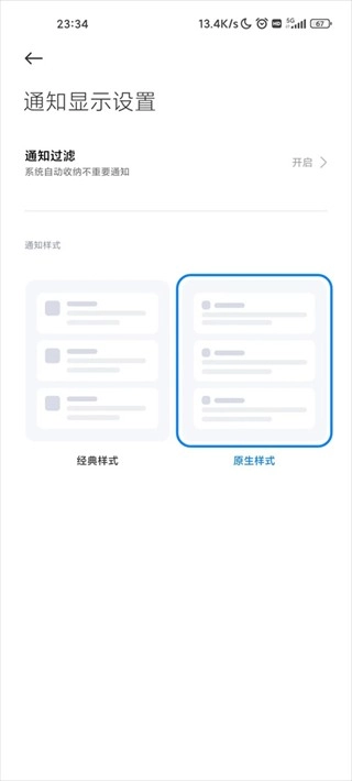 我们按此处理就行,接下来我以我所用的小米MIUI系统为例加以说明,手机的通知样式得改成原生样式。