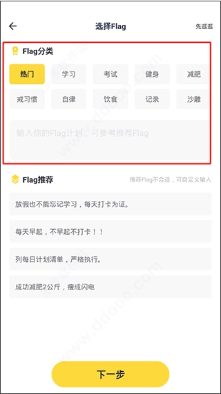 2、充满互动的社区,每个人都能自行立下flag,还能围观他人立flag。