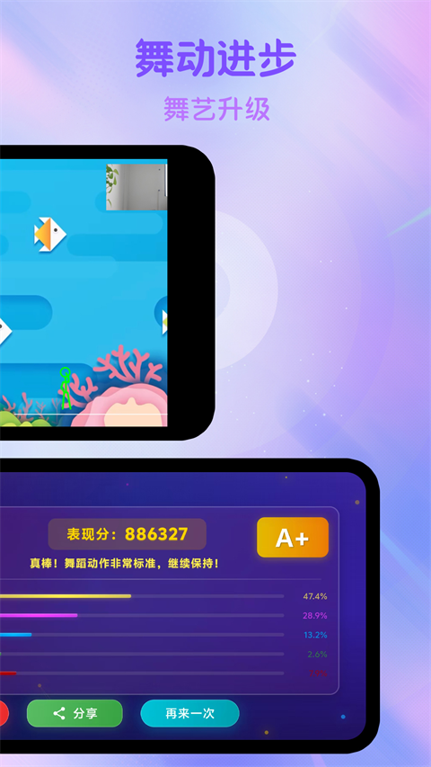 1. AI评分系统:能精确抓取用户的舞蹈动作,进行实时打分,增添舞蹈的趣味性。