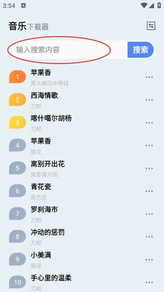 3、轻点右上角箭头指示标志,便能切换搜索源,涵盖酷我、咪咕、酷狗以及网易云等。