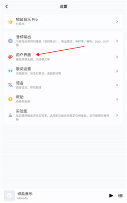 3、于展开的选项里,先点击设置,随后点击用户界面。