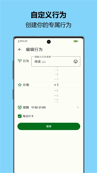 3、你能够输入想要记录的具体行为,借助下方丰富多样的功能实现更优质的记录。