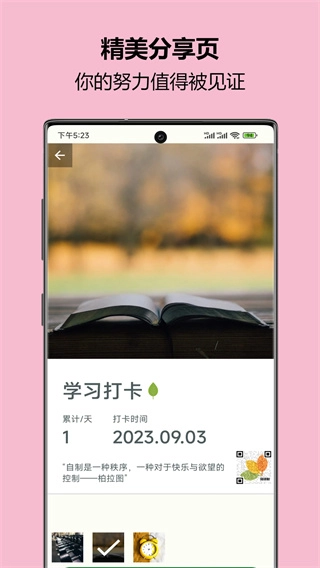 借助每日打卡的方式来追踪你的目标与进度,这项简洁却强大的功能会鼓舞你持续坚持。
