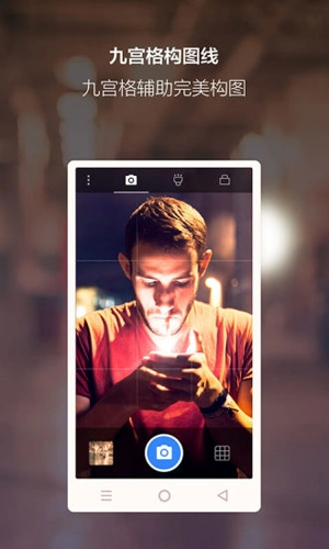 3、只需一键,就能添加九宫格,为拍照提供更贴心辅助,即便是在夜晚,也能轻松拍出高清美照。