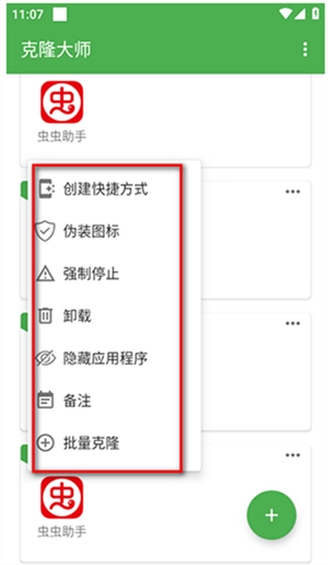 2. 开启克隆大师,点击右下角的“+”号,添加需要克隆的应用。