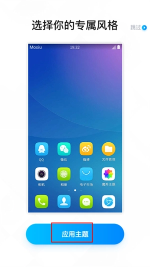 1. 在本站安装魔秀桌面,安装完成后,通过滑动操作挑选心仪的主题,随后点击应用该主题。