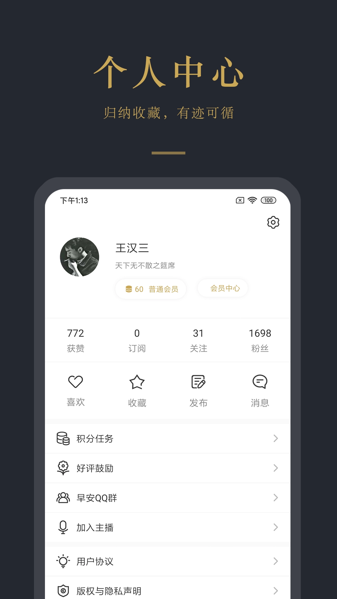 早安语录,由浙江真一科技有限公司精心打造,是一款专注于文艺文章阅读的平台。这里没有铺天盖地的广告,没有让人眼花缭乱的购物页面,更无需会员充值,纯粹以文字为载体,为您构筑一个治愈心灵的空间。每天清晨,当您醒来,都能邂逅一段暖人心扉的文字。