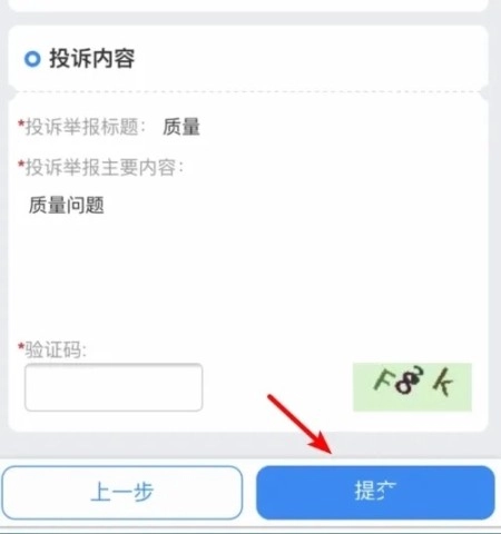 8、对提交的全部信息进行核实,输入验证码,进而完成投诉举报的提交操作。