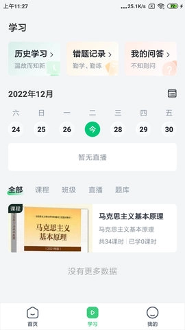 1、平台包含的内容有:在线学习(其中涵盖直播、录播形式)以及学分提升。