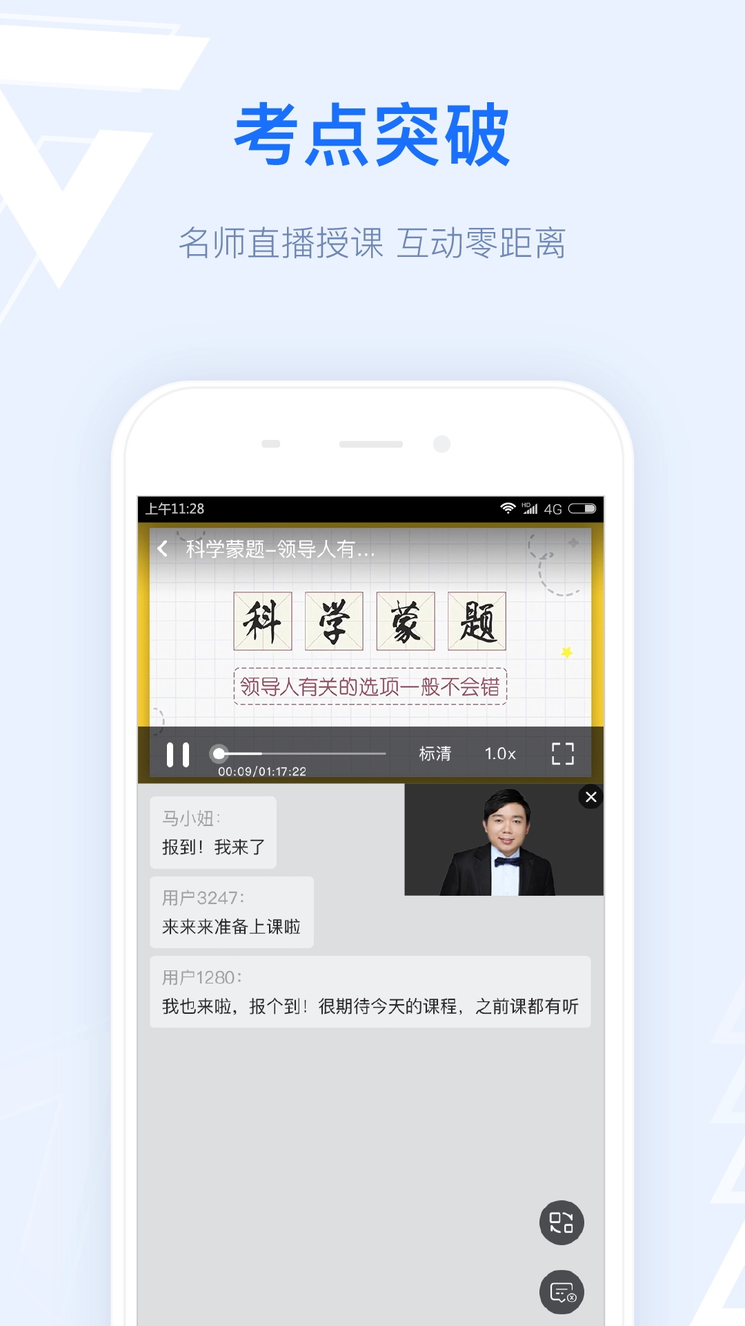 3、学习过程中,有诸多知名老师进行直播,与学生展开互动。
