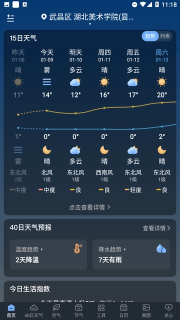 3、全方位:除了提供基础天气数据外,还涵盖空气质量指数、日出日落时间等其他实用功能,充分满足用户对于全面天气信息的需求。