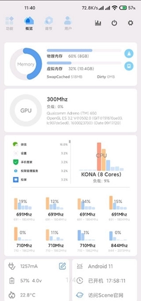 Scene5对部分已有功能实施了重构与优化,涵盖新的自动任务(原系统场景)、应用偏见、充电统计、耗电统计以及帧率统计等。