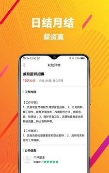 4、您能够知悉手头的每一份兼职资讯,我们会为您提供入职条件、薪资以及工作内容。