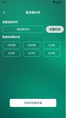 3、然后自定义设置结束时间,点击“开启时间悬浮窗”。