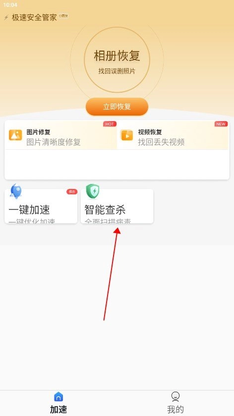 点击智能查杀,扫描病毒防止病毒的侵害
