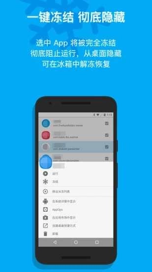 冰冻状态下的 App 也会从桌面隐藏掉。点一下冰箱里的图标,则会解冻并运行。锁屏或回到桌面数分钟后,又会自动冻起来。这样就可以有效的防止它们在后台偷电偷流量。