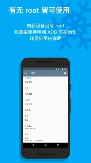 没有 Root的设备,请按照应用说明中的步骤,连接电脑使用 adb 激活一次,即可永久使用,只要不卸载冰箱,重启刷机都可以用。