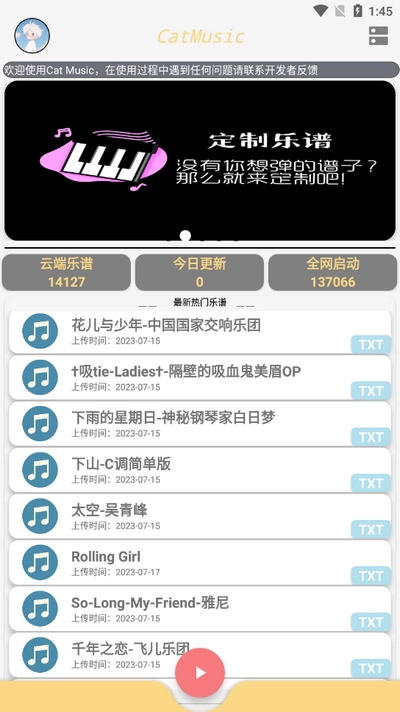 Cat Music是一款极为实用的自动弹琴软件,它能够助力玩家在多个游戏里完成弹琴任务,极大地节省了玩家的时间与精力,实用性极高。而且其操作简便,曲库涵盖上万首歌曲。有需要的朋友,欢迎前来体验!