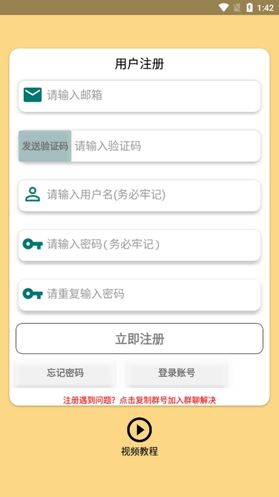 3. 在相应位置输入邮箱、验证码、用户名以及密码,接着点击【注册】按钮。