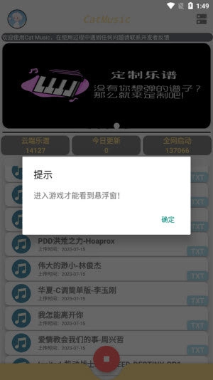 4. 按照提示进入游戏后,便能看到悬浮窗,随即开启自动弹琴功能。