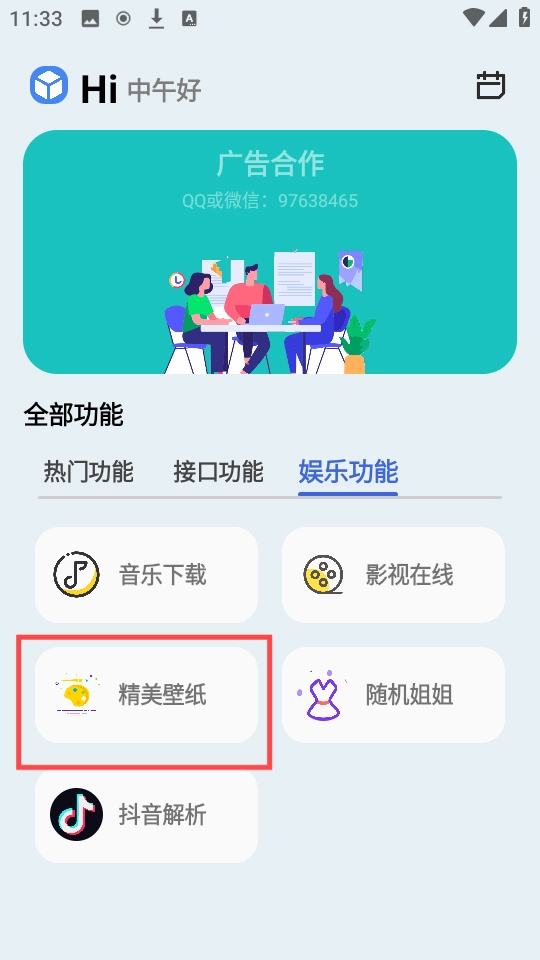 1、打开软件首页,迅速找到“精美壁纸”入口。