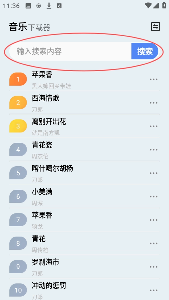 5、如果想快速定位某首歌,可以通过搜索栏输入关键词来查找特定音乐。