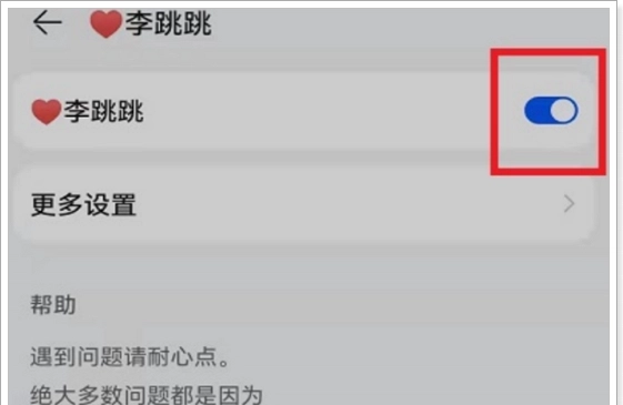 3、找到李跳跳界面上的关闭按钮并点击,随后在弹出的页面里开启三个功能按钮就行了。