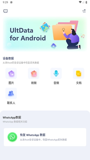 ultdata安卓数据恢复免费版一款安卓手机必备的手机数据恢复工具,多数据类型支持无需root操作可快速找回丢失的数据文件,且软件不限于短信、音乐、文件、视频等等数据哟,快速找回手机删除文件,有需要的朋友快来吧!