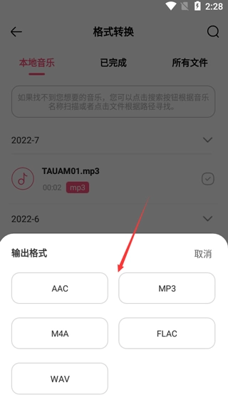 4、之后就可以选择输出格式,包括AAC、MP3、M4A、FLAC、WAV等等;