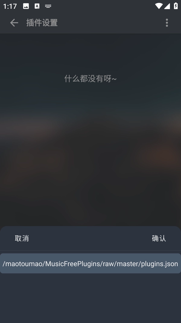 5、在输入栏粘贴此网址:https://gitee.com/maotoumao/MusicFreePlugins/raw/master/plugins.json ,然后点击确定。