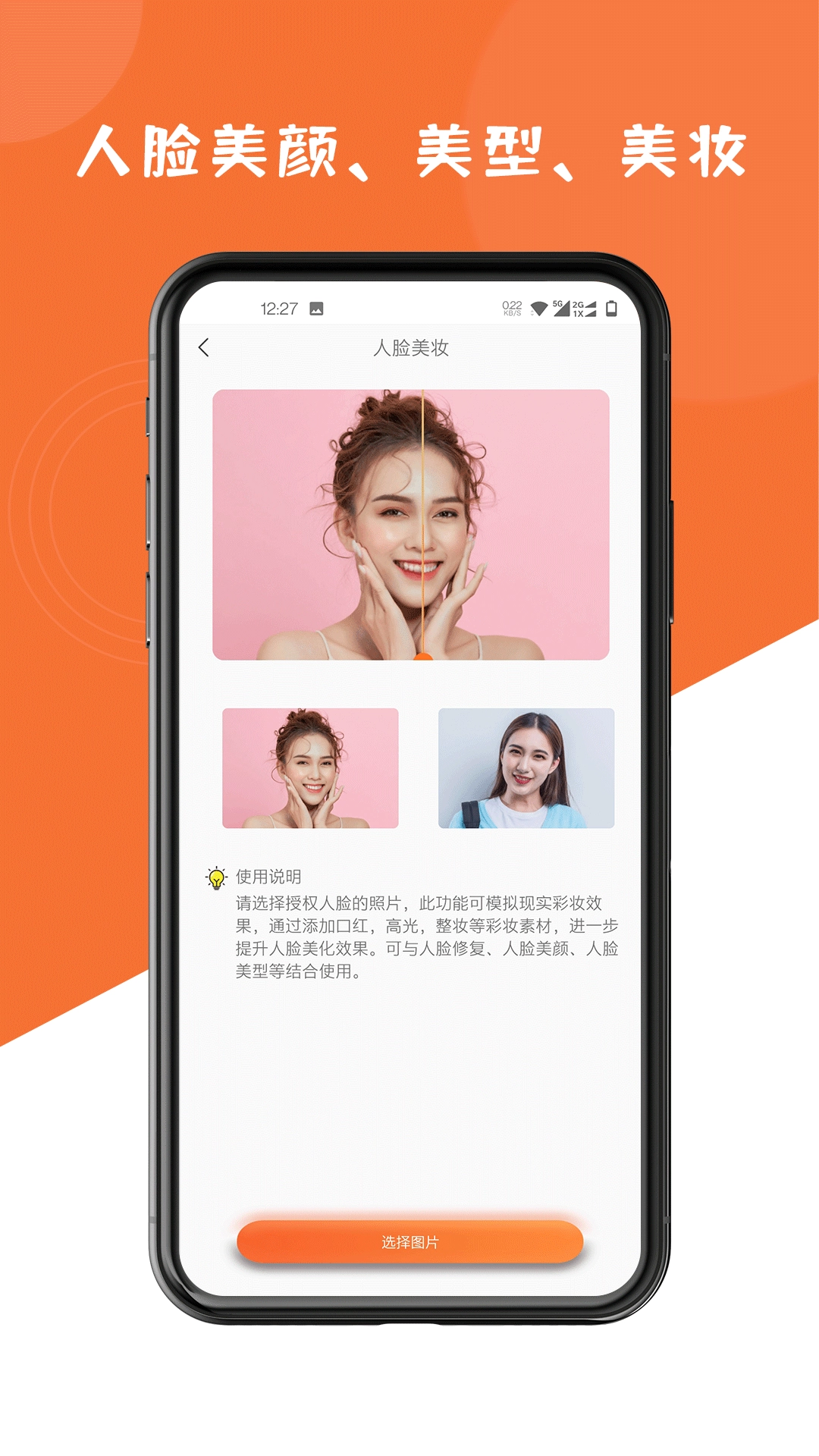 3. 随时随地都能实现人脸美颜、美型、美妆等功能,照片修复操作极其简便。