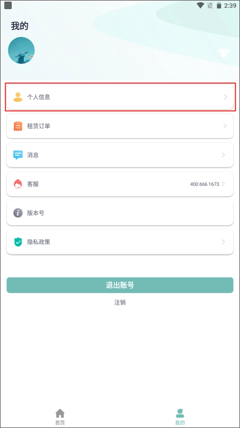 1、选择并切换到【我的】板块,点击上方的“个人信息”。