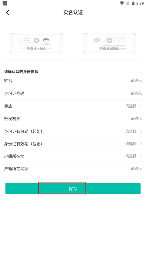 3、填写你自己身份证件上的信息,最后点击保存即可。
