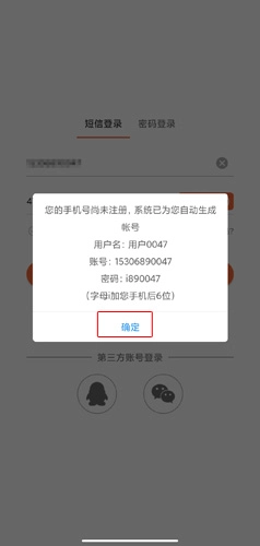 2、用户可通过多种方式登录,具体为输入手机号及验证码后,点击确定按钮。