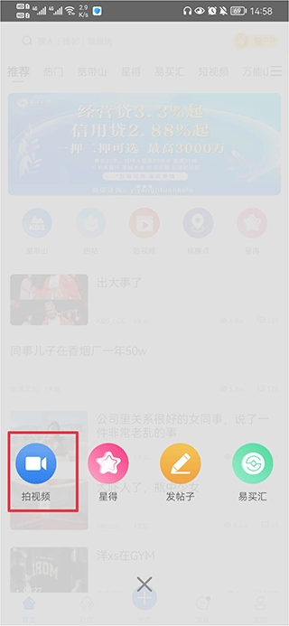 3、可以选择拍摄视频或从相册中选择你要上传的视频