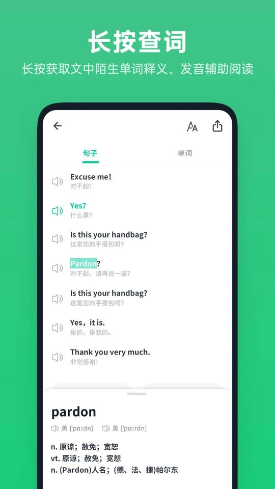 2. 搭载AI语音评测系统,能随时开展发音训练,为海量单词与句子的跟读练习提供支持。