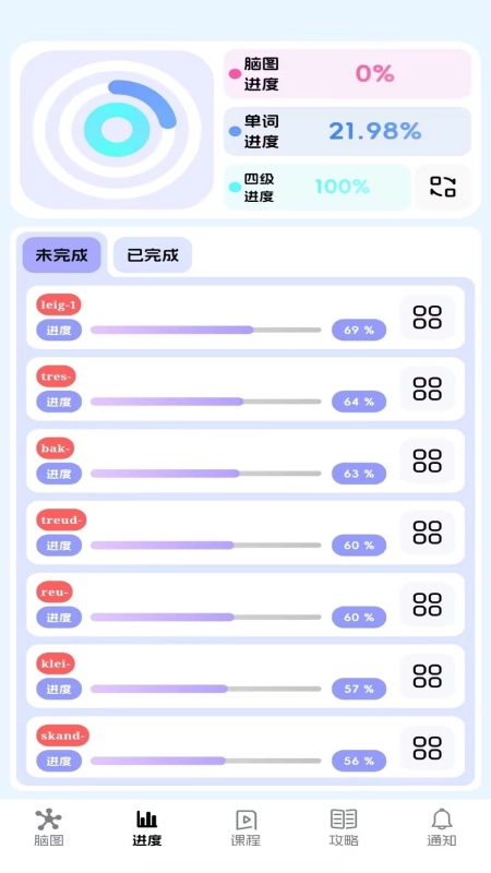 2. 于【进度】板块,可查看自身所学课程的进度情况,此进度信息能为后续学习计划的制定提供参考依据。