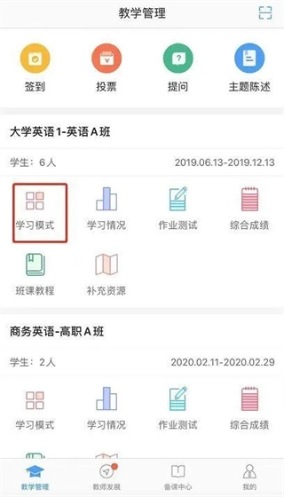 步骤2:于【课程与班级】处,确认自己所教授教材是否准确,若需调整,可与院校管理员取得联系。教师能够在【自定义教学列表】里勾选自己所授课程,如此,平台便仅展示所勾选教程的相关信息。