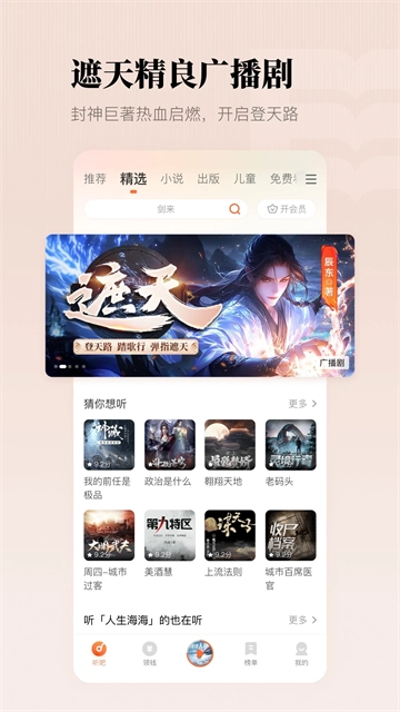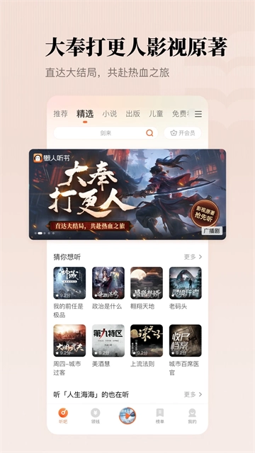 免费收听《雪中悍刀行》与《剑来》!《三体》、《文城》、《赘婿》正人气热播!海量精品,解锁即可免费畅听!新用户专享VIP 与百元听读券!